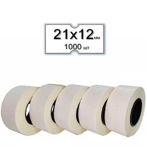 - Розмір 21×12 мм – універсальний формат для нанесення ціни чи дати.
